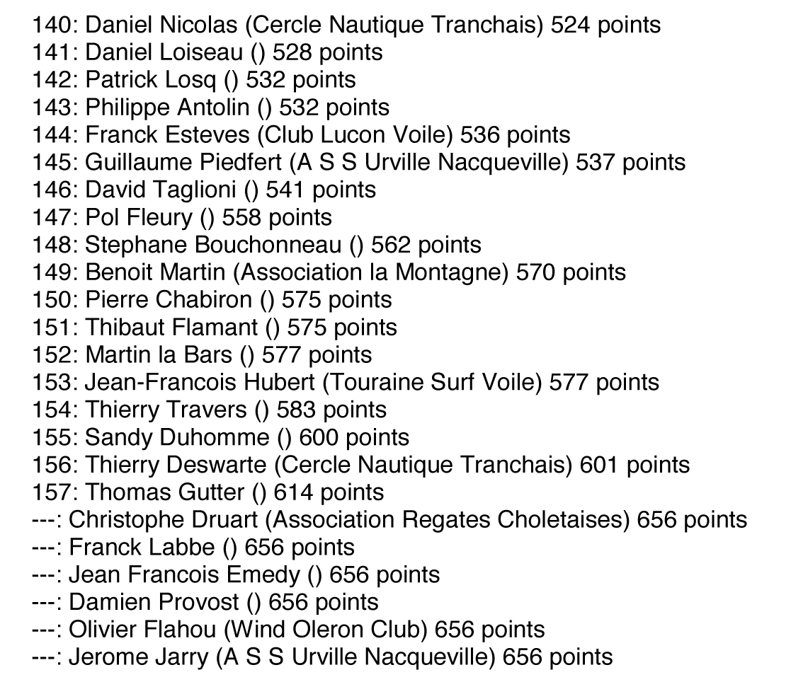 Catégories Actualités 11 juillet 2011 Raid la Tranche – île de Ré : Le Classement 1er. Jocelyn de Souza 2nd. Olivier Bernard 3ème. Jérôme Charlemagne