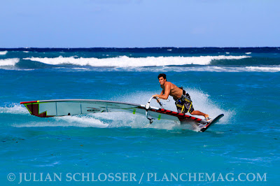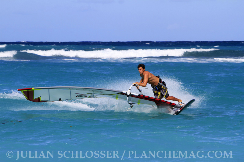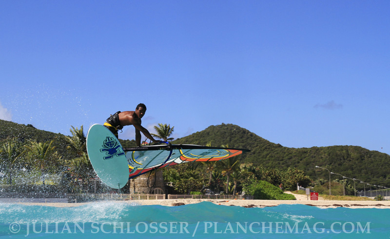 Cette après-midi, place au Slalom. Antoine Albeau, Julien Quentel, Pierre Mortefon et Alexandre Cousin ont enchaîné les bords et jibes afin de trouver la bonne combinaison pour les 3 jours de compétitions à venir. La délégation Guadeloupéenne était également présente avec en tête de Série Edson Genipa, récent vainqueur de la Taïnos Faya début Janvier.
