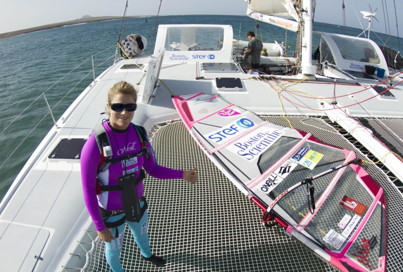 Sarah Hébert s’est élancée hier matin à 10h00 heure locale (11h00 heure de Paris). Avec des vents compris entre 20 et 23 noeuds, Sarah est partie équipée d’une voile de 5,8 mètres et d’une planche de 110 litres. Sarah et son équipe avaient été contraints de faire une escale technique sur l’Île de Sal suite à un incident lors d’un appareillage périlleux.