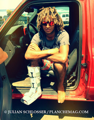 La mauvaise nouvelle du jour est l’arrivée de Boujmaa Guilloul avec un pied dans une attelle. Lors de la session d’hier, Boujmaa s’est blessé lors d’un surf.