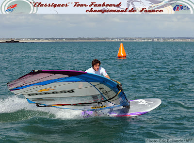 Dans l’autre poule, c’était un véritable numéro de Coupe du Monde : avec un duel Questel/Quentel endiablé ! Les iliens se sont tenus l’un l’autre jusqu’au bout. Julien Quentel qui avait pris l’avantage, a perdu sur le dernier jibe et Antoine Questel remporte la course sur le dernier bord. Le brestois Damien Le Guen les suit avec brillot.