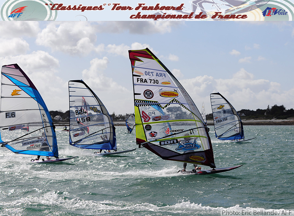 Aujourd’hui, le vent reste très incertain. Les coureurs avaient rendez-vous au briefing à 11h à Loctudy, là sera prise la décision de courir en Slalom ou d’aller à La Torche pour faire du SUP Sailing.