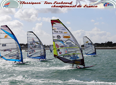 Les trois filles en lice ont pu courir 2 heats, au terme desquels le classement est le même qu’hier, Delphine Cousin en tête de file, suivie de Fanny Aubet et Alizée de Souza. Pour les garçons la donne n’a pas été la même, le vent a fait son carnaval, oscillant de 11 à 16 nœuds pendants les courses. La direction de course a donc composé avec ce panel météo perturbé.