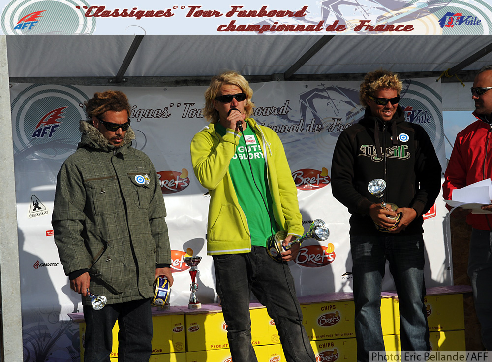 Les prix ont été décernés par Anthony Rigaut, juge national, aux trios gagnants hommes et femmes dans les disciplines de Vagues et de Slalom. Des podiums provisoires restés inchangés depuis le mercredi en raison de la météo.:
