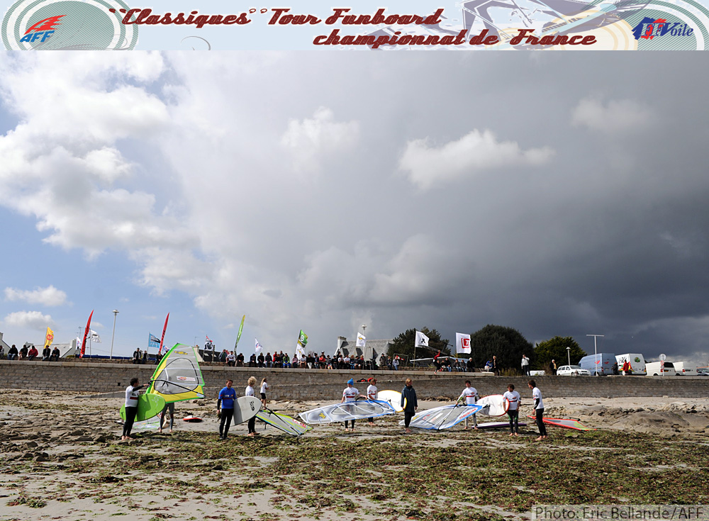 Aujourd’hui, rendez-vous à La Torche à 11h, les conditions annoncées laissent peu d’espoir et les compétitions officielles vont être difficiles à lancer. Mais si l’on en croit le bilan de la journée il y aura matière à naviguer quand même : à défaut d’air il est prévu une houle d’1,5 mètre.