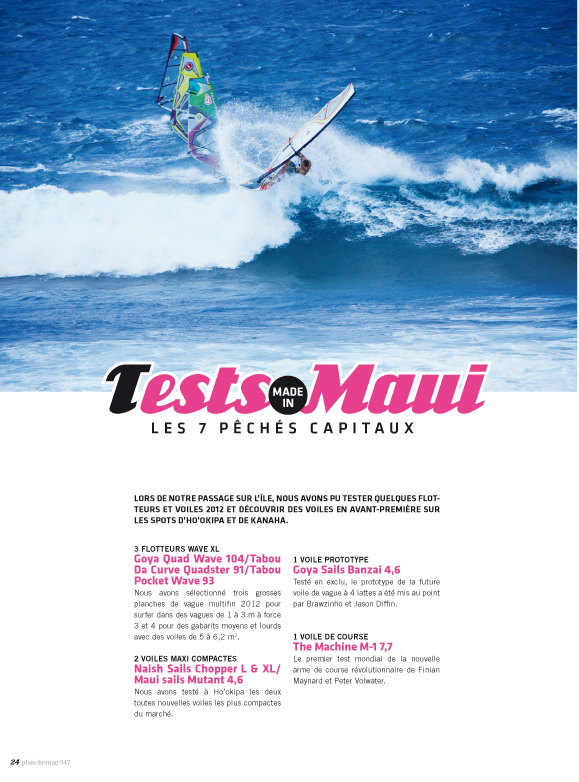 LORS DE NOTRE PASSAGE SUR L’ÎLE, NOUS AVONS PU TESTER QUELQUES FLOTTEURS ET VOILES 2012 ET DÉCOUVRIR DES VOILES EN AVANT-PREMIÈRE SUR LES SPOTS D’HO’OKIPA ET DE KANAHA.