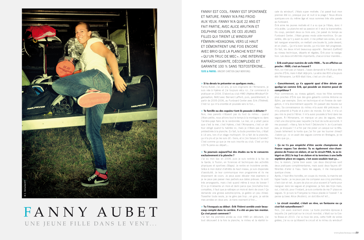 Fanny n’a que 22 ans et fait partie, avec Alice Arutkin et Delphine Cousin, de ces jeunes filles qui tirent le windsurf féminin hexagonal vers le haut et démontrent une fois encore avec brio que la planche n’est pas « qu’un truc de mec ».