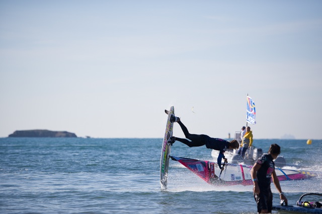 Vers midi, la décision a été prise par le directeur de course de l’EFPT, l’autrichien Tom Hartmann, de lancer une session de qualification pour le Tow In, du windsurf tracté par un bateau. Cette discipline reste très spectaculaire car l’action se passe près du bord, sans réel temps mort, et permet ainsi au public de rester aux premières loges !