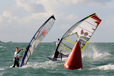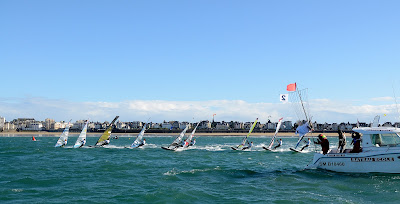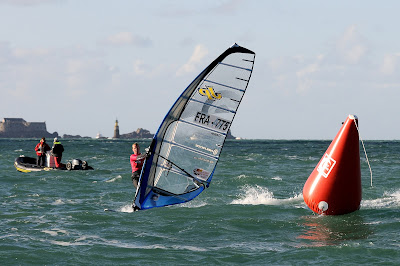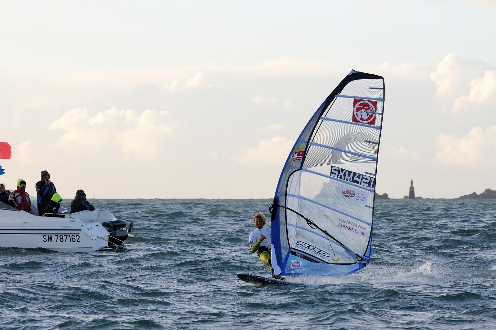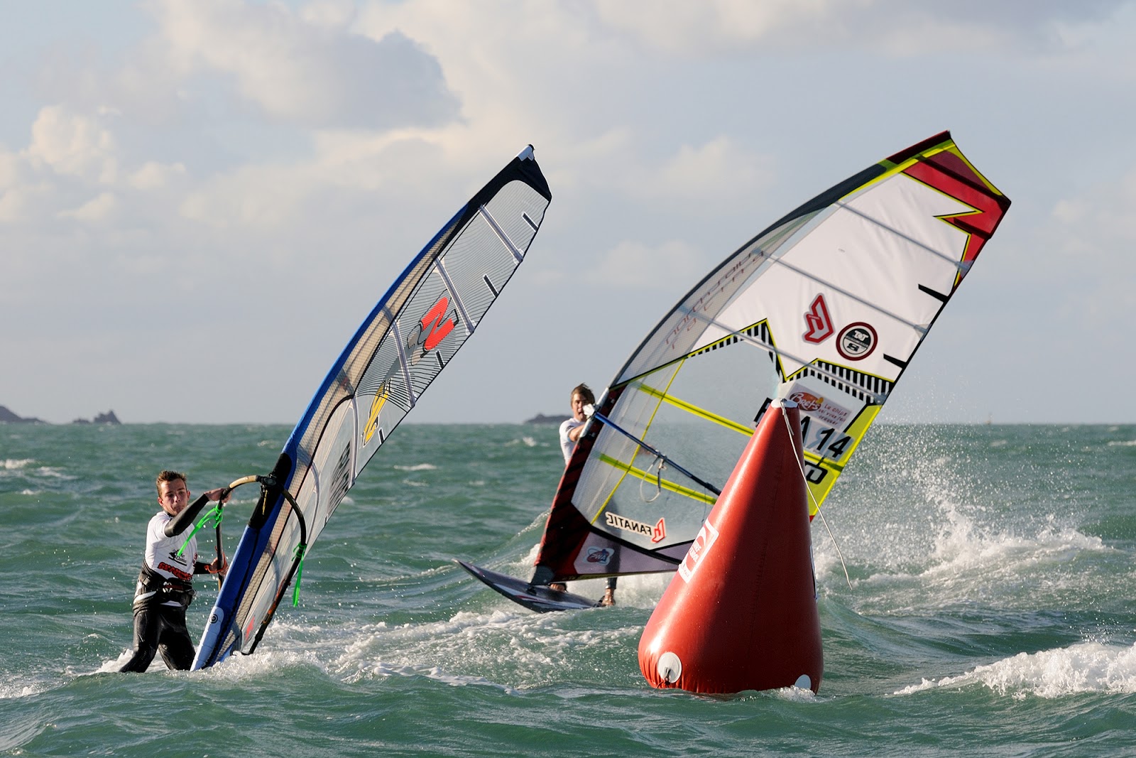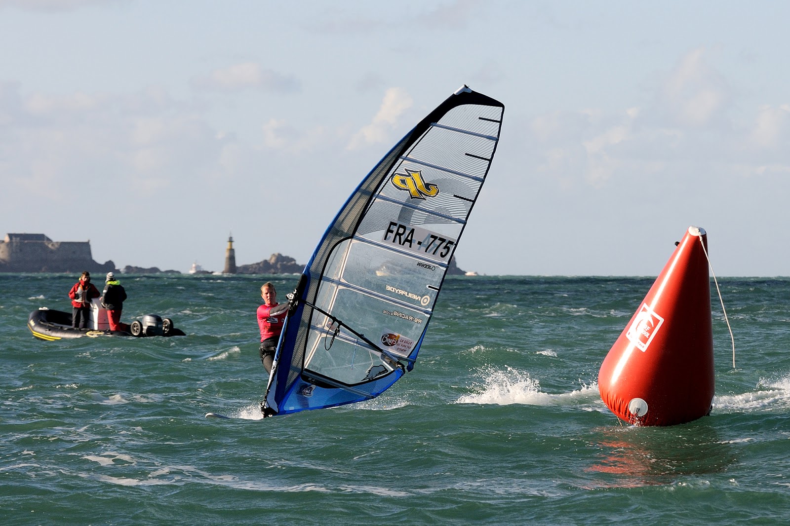 Le vent s’est fait attendre ce matin sur la Hoguette. De belles sessions de vagues propices au surf déroulaient sur la plage. Mais l’air n’est monté qu’en début d’après-midi. Le comité de course a donc abandonné le projet de courir la Vague aujourd’hui, et a lancé une manche en Slalom. Il y aurait eu la possibilité de naviguer en Vagues en fin d’après-midi avec la marée montante. Mais la nuit tombant tôt à cette période, à 17h il était trop tard pour lancer une procédure.
