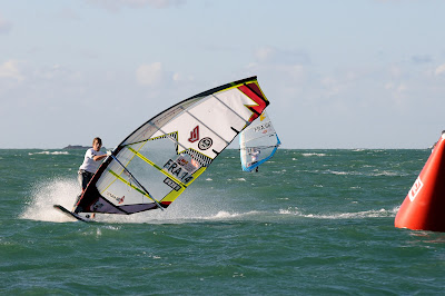 Entre grains et soleil, les 48 concurrents ont dû lutter avec un vent d’ouest pas toujours régulier, allant de 14 à 20 nœuds. Malgré cela les heats se sont enchaînés sur l’eau et les coureurs se sont dits très contents du comité de course. Seule la finale gagnants a dû être annulée puis relancée, le temps de remouiller le parcours.