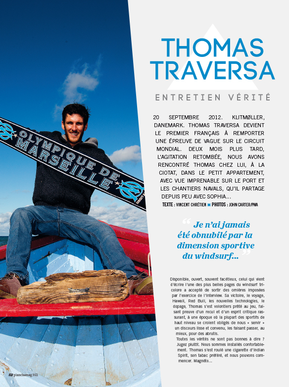 20 SEPTEMBRE 2012. KLITMØLLER, DANEMARK. THOMAS TRAVERSA DEVIENT LE PREMIER FRANÇAIS À REMPORTER UNE ÉPREUVE DE VAGUE SUR LE CIRCUIT MONDIAL. DEUX MOIS PLUS TARD, L’AGITATION RETOMBÉE, NOUS AVONS RENCONTRÉ THOMAS CHEZ LUI, À LA CIOTAT, DANS LE PETIT APPARTEMENT,