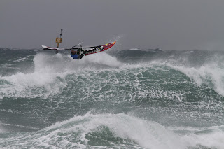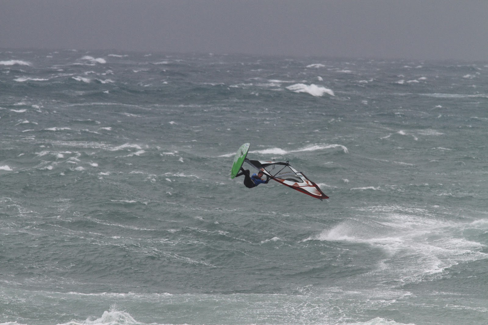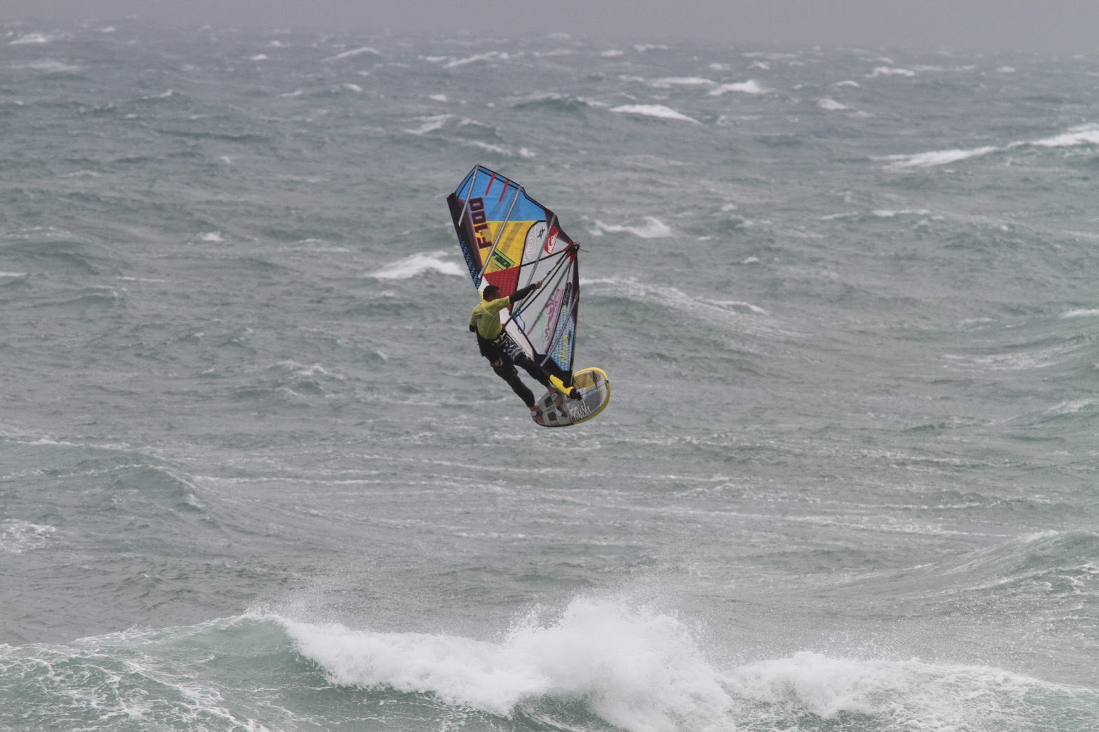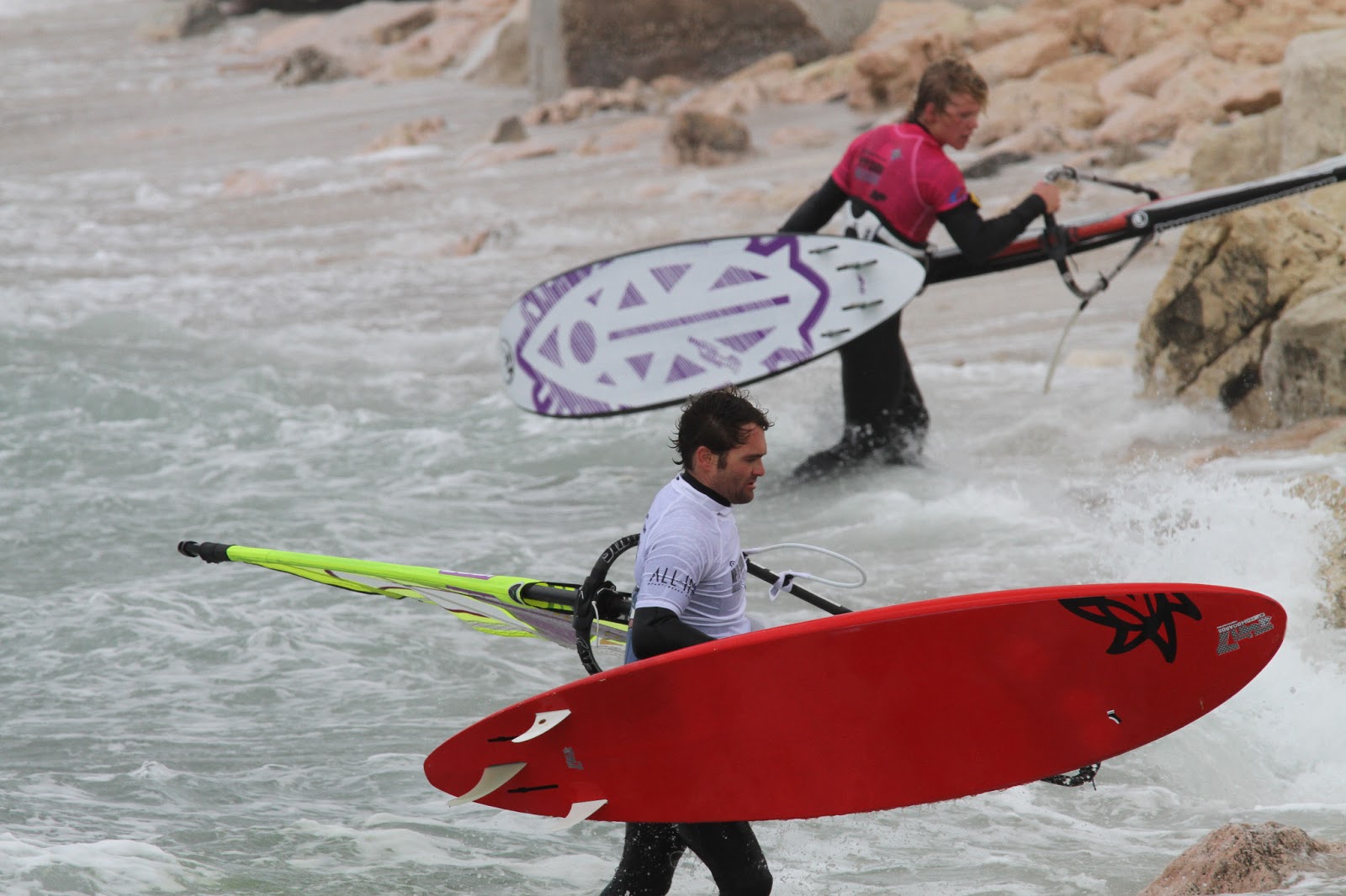 Côté houle, comptez un bon 2 mètres et jusqu’à taille de mât selon Thomas Traversa. Ajoutez un bon courant et surtout des vagues imprévisibles qui ont envoyés dans les cordes, tous les coureurs, sans exception. Les plus chanceux n’ont nagé que quelques minutes après leur matos, d’autres comme Yann Sunne en quart de final ont nagé 6 minutes, soit la moitié de leur heat ! Les plus malchanceux ont été renvoyé direct dans les rocks (sans danger) à 300 mètres sous la cabane des juges….On ne compte plus ceux qui sont revenus à pieds !!
