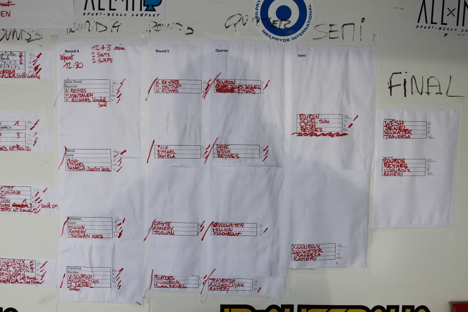 Ils se retrouvent dans la finale gagnant où Thomas Traversa domine totalement le heat par son choix de vagues, sa qualité/engagement au surf et ses alti jumps. C’est plus serré derrière entre Julien « Wesh » Taboulet et Peter Volwater. Dommage pour Jules Denel qui réalise son plus mauvais heat de la journée, il passe à côté. L’une des raisons ? Il a cassé sa planche Truster sur le heat précédant et a emprunté la quad de son pote Yann Sune. Il n’avait plus les mêmes repères, ce qui l’a un peu déstabilisé. En même temps, les autres ont été meilleurs.
