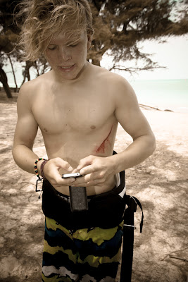 Plus de peur que de mal (on l’espère), Justin devrait être de retour à l’eau rapidement après un bon bain de Bétadine et quelques Stéri Strip.