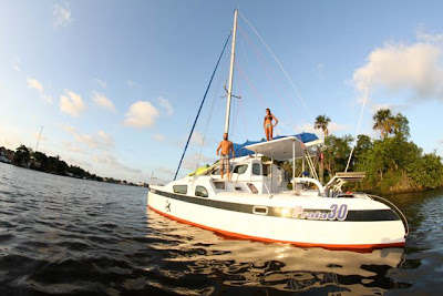 « Nous Venons d’arriver à notre première destination, Lencois Maranhenses. Après 2 jours de navigation au près depuis Sao Luis, nous sommes entrés dans la rivière Preguiças et avons encore navigué 4 heures au prés jusqu’à Barreirinhas.