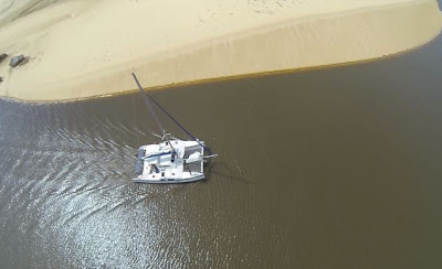 « Nous Venons d’arriver à notre première destination, Lencois Maranhenses. Après 2 jours de navigation au près depuis Sao Luis, nous sommes entrés dans la rivière Preguiças et avons encore navigué 4 heures au prés jusqu’à Barreirinhas.