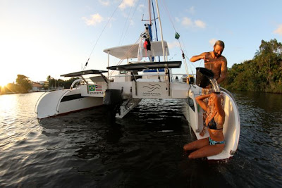 Lassé de la compétition, le brésilien a décidé l’année dernière de s’acheter un catamaran et de le retaper entièrement afin de longer du nord au sud les côtes brésiliennes à la recherche de nouveaux terrains de jeu pour le Windsurf, Kitesurf, SUP et Surf.