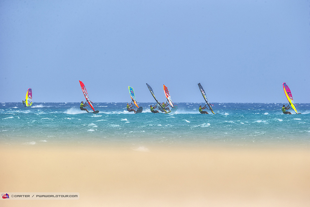 Voici le résumé de cette première journée de compétition pour les slalomeurs présent à Fuerteventura pour la 4ème épreuve du tour 2017. Après 2 manches courues dans un vent très fort, Antoine Albeau (équipé de sa 5,6M2 toute la journée) prend pour le moment le lead. Suivent Ross Williams et Julien Quentel.