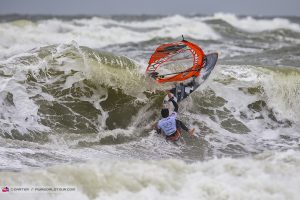 Au terme d’une journée aux conditions météo bien hardcore, les organisateurs de l’épreuve PWA de Sykt ont pu hier (presque) terminé la double élimination Vagues chez les hommes.