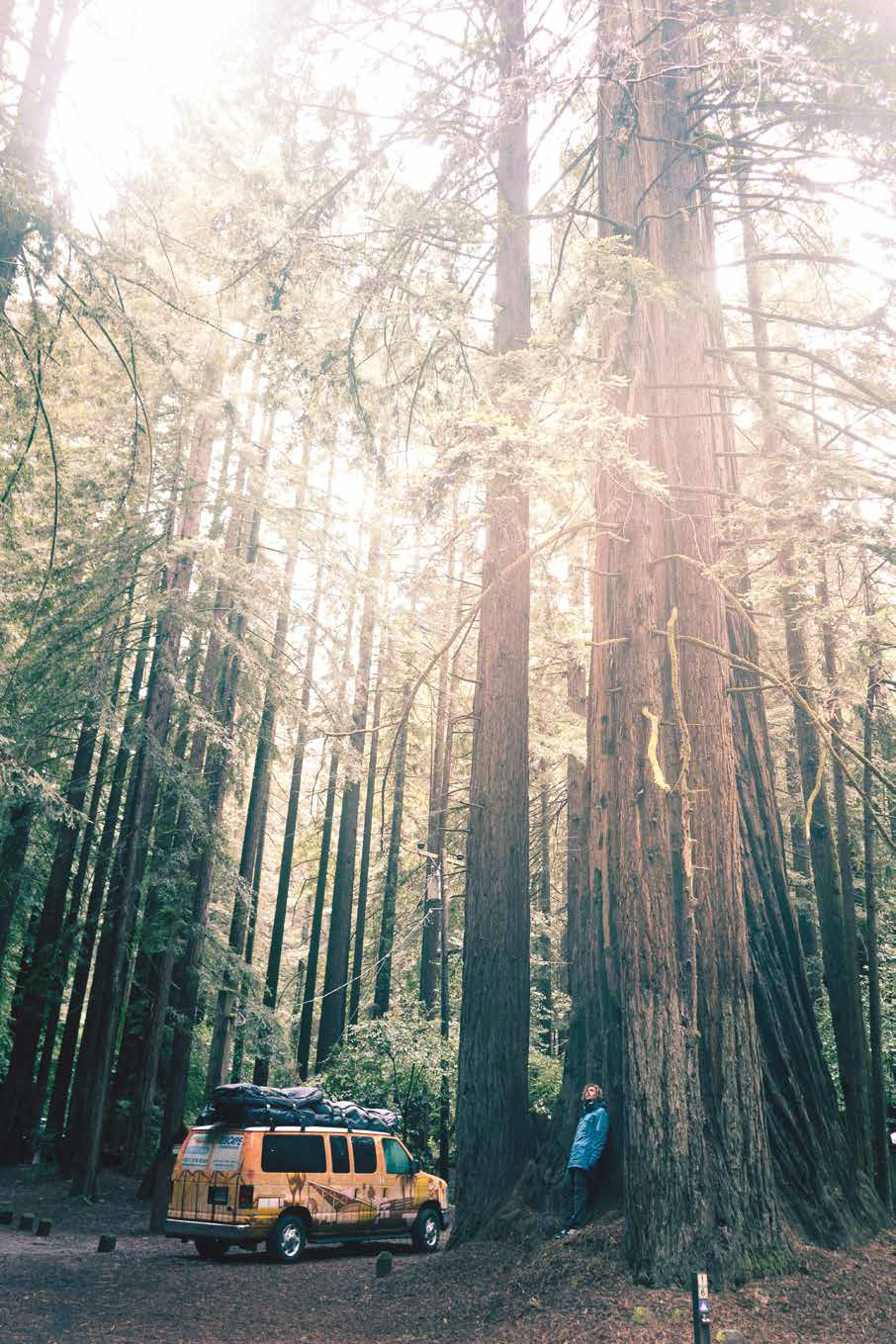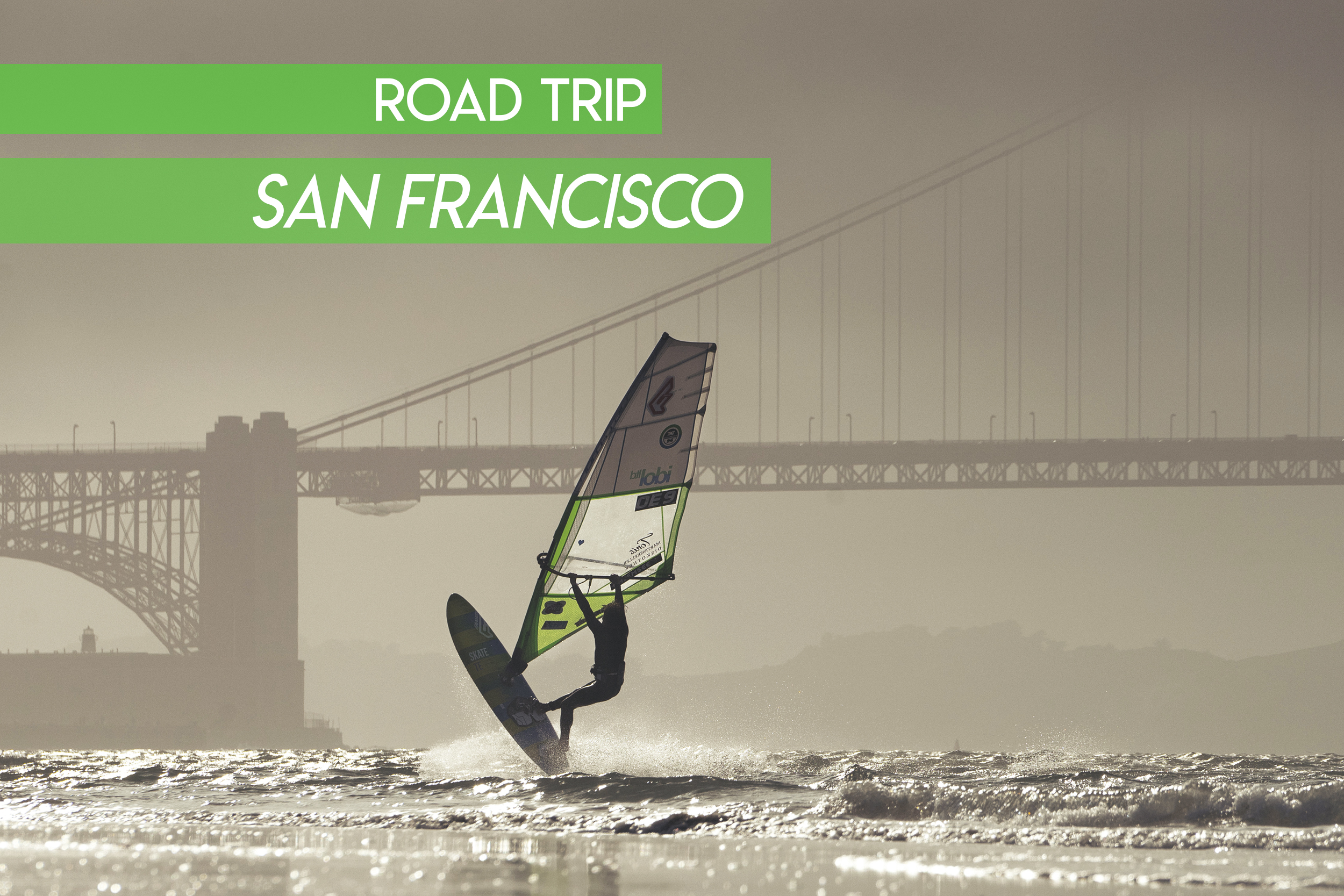 Une fois ce chargement fini, Graham nous lâche devant Escape Campervan, où nous avons loué notre van. Il sera notre habitacle pour les 2 semaines à venir : couchages, frigo, kitchenette et, plus important, 4 barres de toit, c’est parfait. Après un nouvel exploit de chargement et de rangement (nous avons fait rentrer 100 kg de matos dans le véhicule), il nous reste juste assez d’espace pour dormir. Nous démarrons la Ford, avalons notre premier burrito du trip et roulons tranquillement vers le Golden Gate. Le vent hurle. Beaucoup de windsurfers et de kitsurfers ont pensé à venir sur ce pont de 2,7 km de long, et 227 m de haut. Nous nous garons à Crissy Fields, au sud du pont et décidons de nous mettre à l’eau avant de poursuivre notre route vers les terres sauvages.