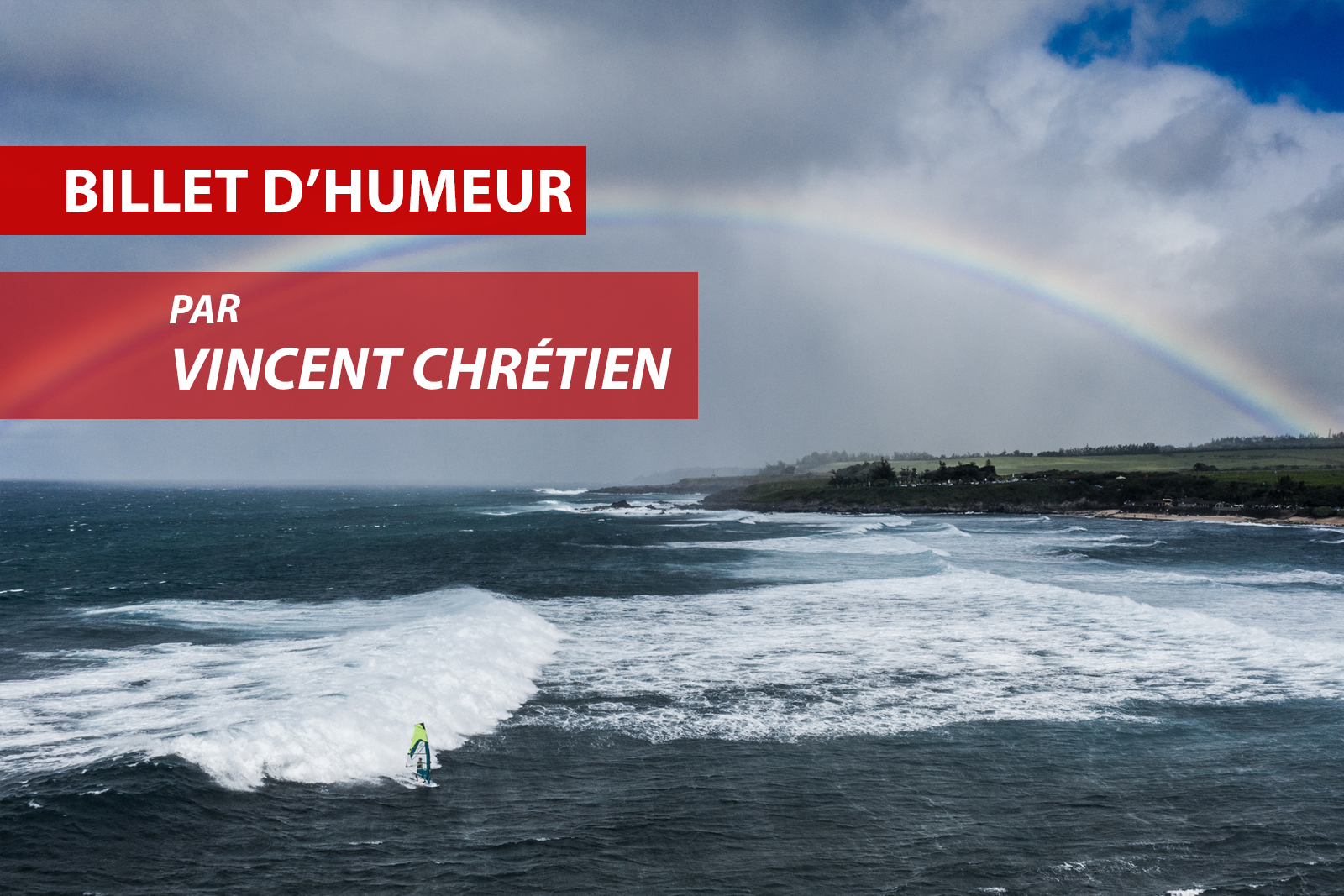 Imaginez pourtant ! A chaque coup de vent, à la première vaguelette, allez, go ! Fissa à la baille et à vous l’extase de la glisse : l’eau qui se change en vin et fait tourner la tête au fur et à mesure que la pompe à adrénaline prend des tours et que se répandent par litres les endorphines dans votre gentil néocortex pourri gâté. On en a tous rêvé de cette vie là, non ? Nous serions grands, beaux, forts, bronzés et super méga zen que le Dalaï Lama à côté passerait pour un zébulon sous amphéts. Bref, à vivre 365 jours par an sur le spot de nos rêves – libre à chacun de choisir lequel -, nous serions à coup sûr épanouis. Ouais, ben, il semblerait qu’il y ait une légère ombre au tableau. Lors d’une interview, Anders Bringdal ne nous confiait-t-il pas?:«Tu déboules à Ho’okipa,il y a trois mètres de vagues et pas un chat sur l’eau ! Toi t’es comme un fou : “Mais les mecs pourquoi vous naviguez pas ?!” “Oh, le vent est un peu rafaleux aujourd’hui, l’orientation des vagues pas top… ”