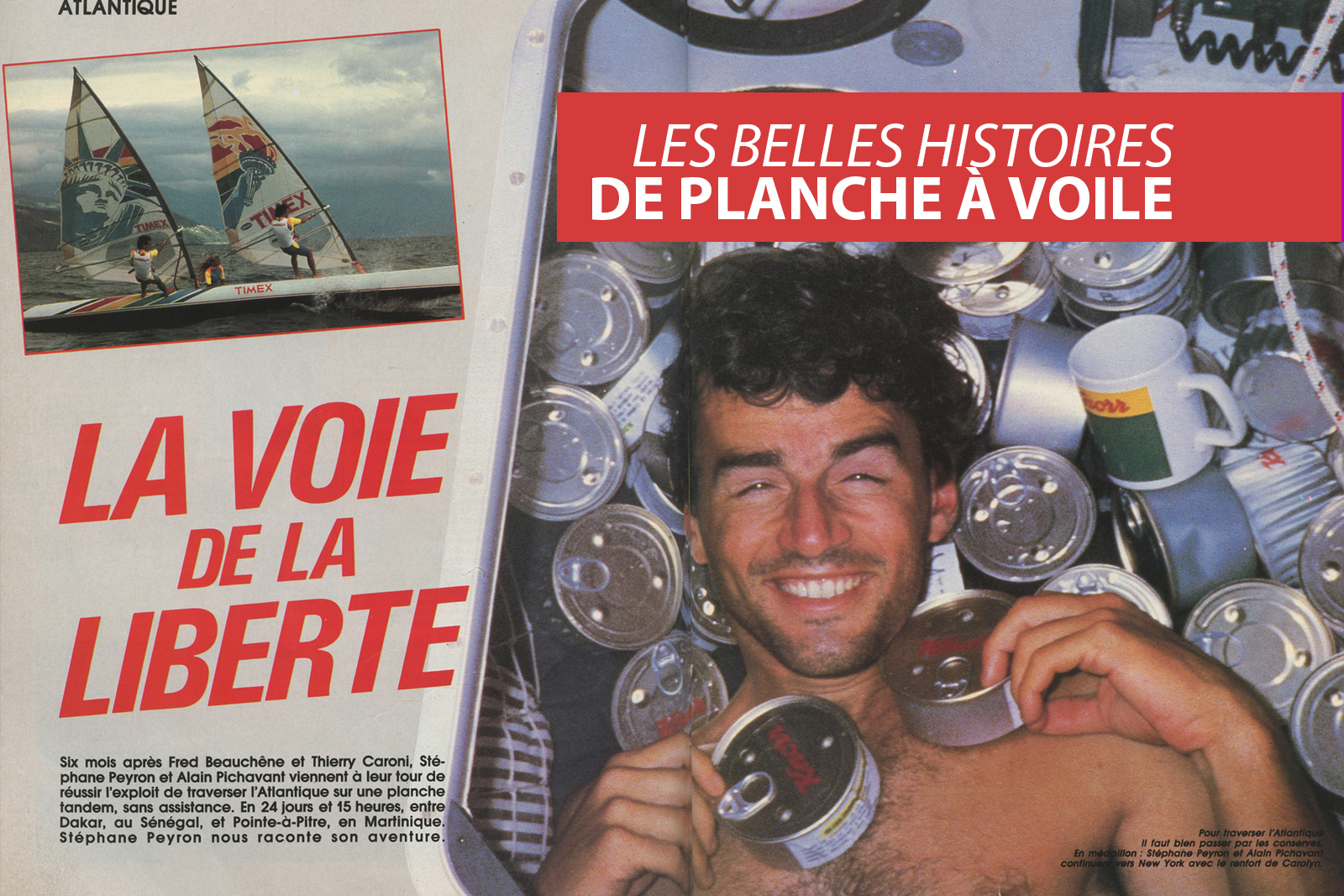 Pour les nostalgiques, voici les scans d’un article de Mars 1986 (Planchemag N°69) sur la traversée de l’Atlantique de Stéphane Peyron et Alain Pichavant.