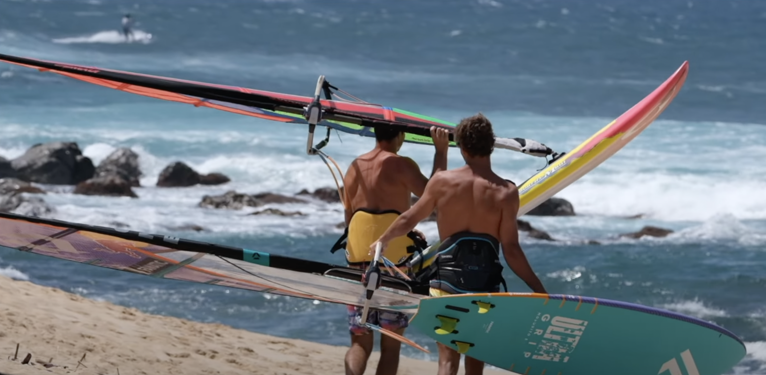 Avant de quitter Maui pour rentrer chez lui à Wissant, Arthur Arutkin s’est offert une dernière session de waveriding en short avec son acolyte Laurent Guillermin.