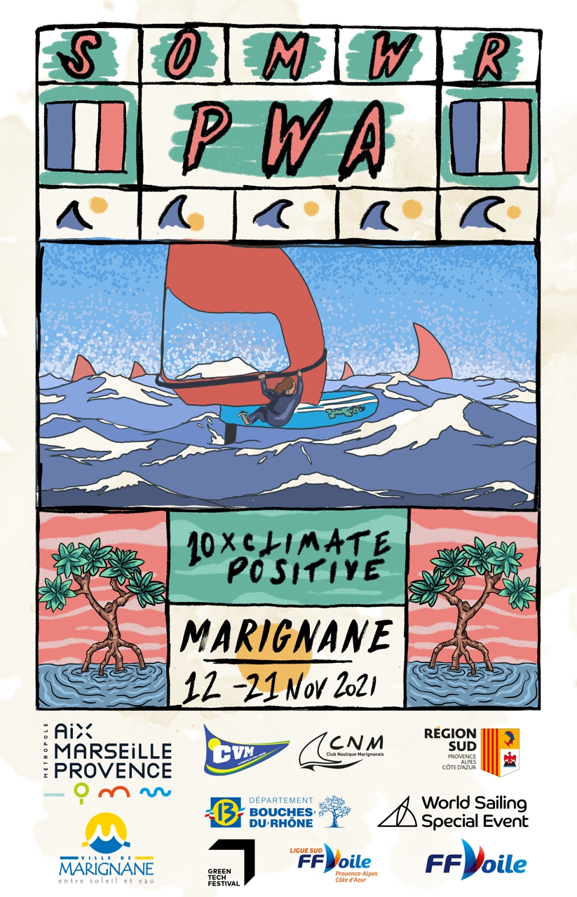 Pour arriver à mettre en place cet Finale qui vient sauver un peu cette année 2021 assez calme du côté de la PWA, cette dernière s’est associée à la marque SOMWR et au Greentech Festival ainsi qu’à l’expérience Terrain du Club Nautique de Marignane et du Cercle de voile de Martigue.