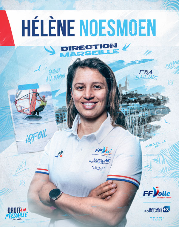 La planche est une histoire de famille chez les Noesmoen : son père Yves, a effectué une préparation olympique pour les JO de 1984 et été champion d’Europe et du Monde. Tandis que ses trois frères et sœurs ont tous brillé également sur des compétitions internationales. Diplômée de l’école d’ingénieurs INSA à Rennes, la Sablaise enchaine les titres : en 2020, elle remporte le championnat du monde de Formula Foil et le Championnat d’Europe d’iQFOiL, puis le Mondial et l’Euro d’iQFOiL en 2021 et à nouveau le titre continental en 2022. En 2023, à l’approche de l’échéance olympique, la concurrence internationale se densifie et les écarts entre les concurrentes se resserrent mais Hélène se maintient aux avant-postes sur le circuit international : quatrième aux championnats d’Europe et cinquième aux mondiaux en août.