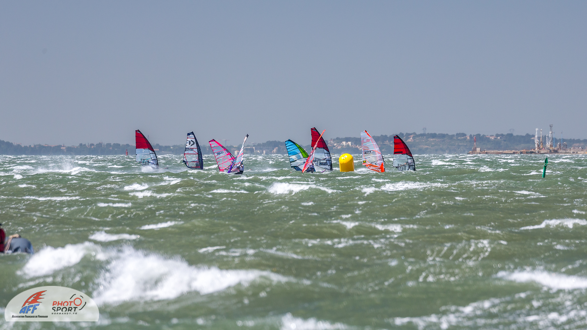 Samedi 20 avril, les 12 filles et 51 garçons venus des quatre coins de l’hexagone et même de Martinique voient le vent forcir et l’écume blanche s’intensifier au fil des heures. Ils comprennent que ce plan d’eau est un défi à lui seul et que franchir la ligne d’arrivée va nécessiter un engagement physique, technique et mental total. La première course de la saison 2024 commence fort, avec seulement 32 garçons à franchir la ligne d’arrivée sur les 51 inscrits. Les conditions sont dantesques, la plupart sont à la rue.