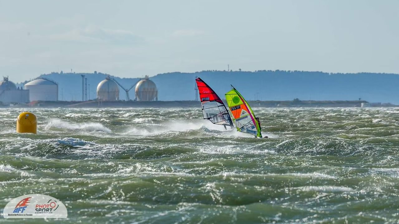 Ce Dimanche, pour le deuxième jour de course, le Mistral a laissé une petite fenêtre d’accalmie à l’AFF pour boucler une course de Foil avant de repartir au baston vers 15h30 pour une partie de baby Slalom hardcore, avec des rafales à 45 nœuds.