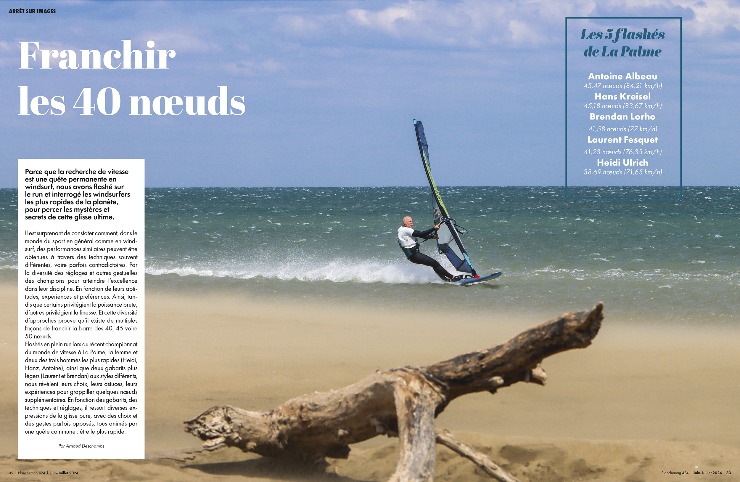Tous nous révèlent dans le Planchemag 424 actuellement en kiosque, leurs choix, leurs astuces, leurs expériences pour grappiller quelques nœuds supplémentaires. En fonction des gabarits, des techniques et réglages, il ressort diverses expressions de la glisse pure, avec des choix et des gestes parfois opposés, tous animés par une quête commune : être le plus rapide.