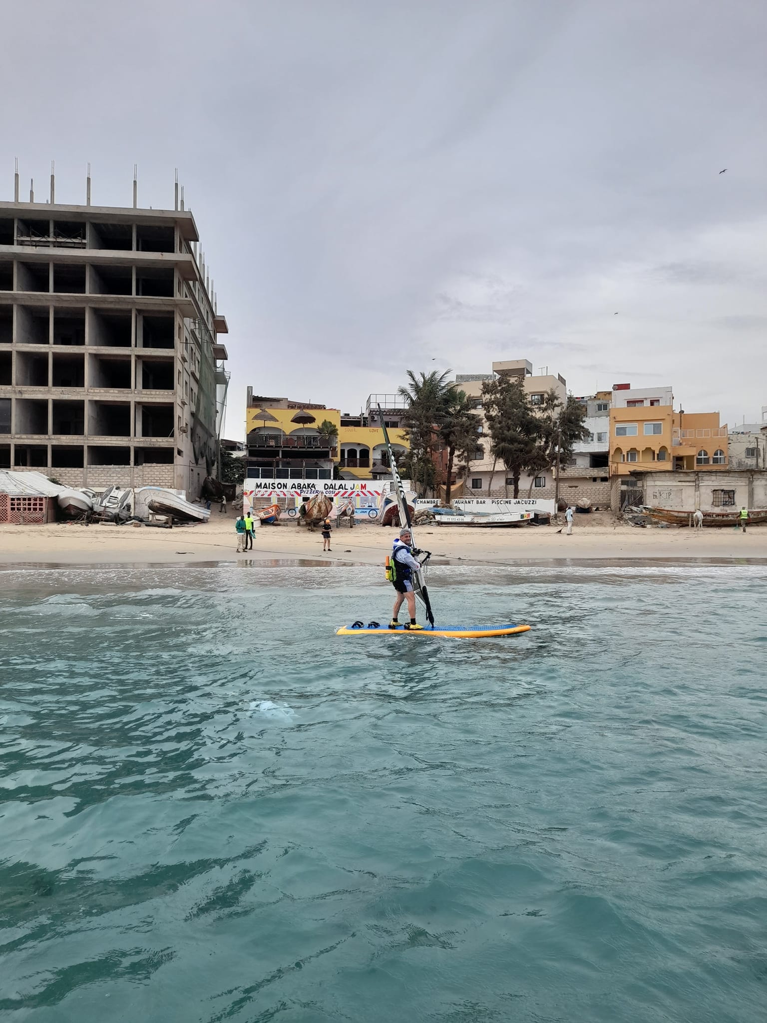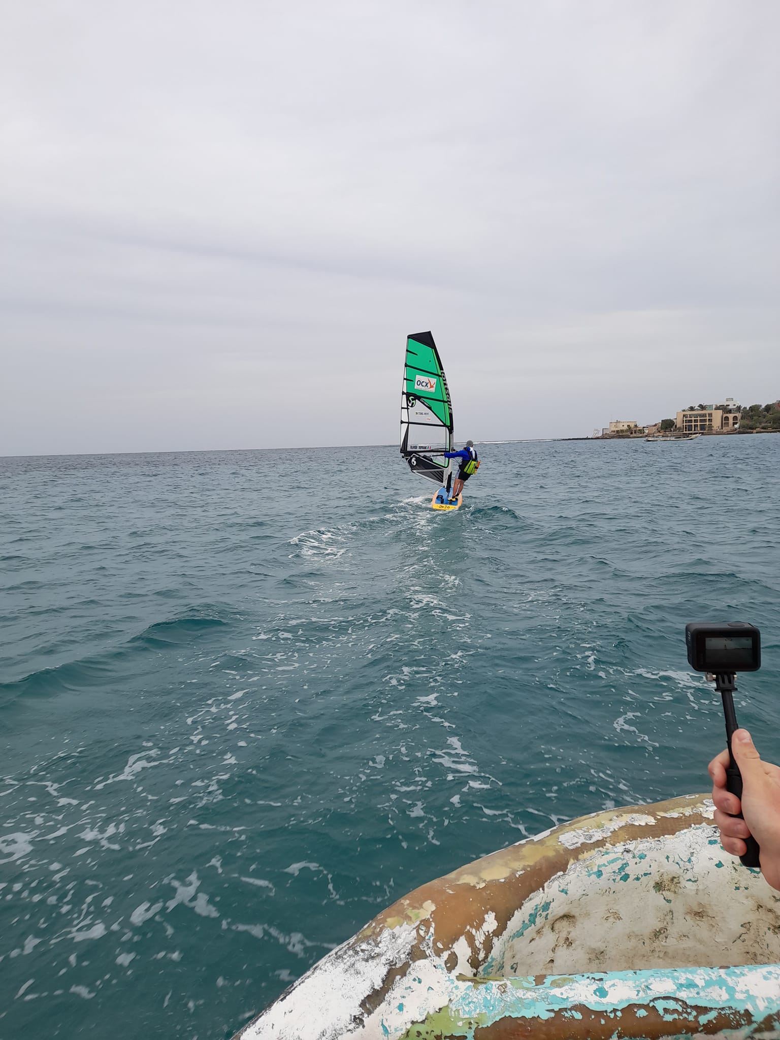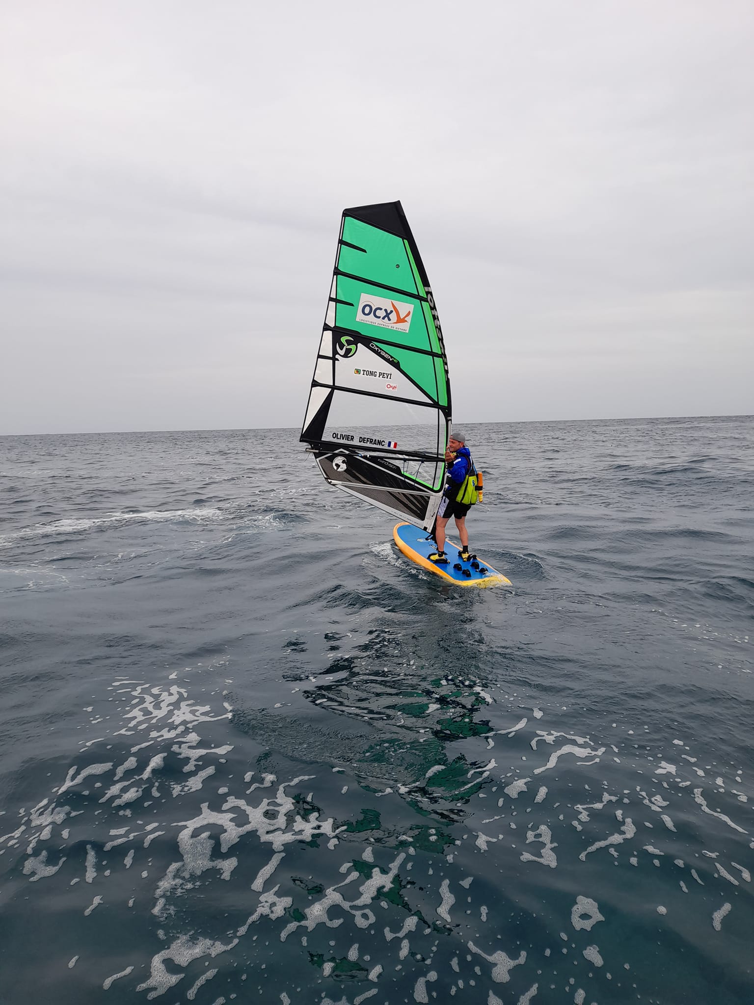 Olivier a quitté Dakar ce mardi matin, le 10/12/2024 à 08h45. Lui en planche à voile et son équipe (qui compte 7 personnes) à bord d’un catamaran. Interdiction pour lui de monter dessus (comme Christian). Il mangera sur sa planche et il dormira sur sa planche qu’il entourera de flotteurs (comme Christian)… Car sa planche, shapée par Sergio Munari de Black Local, est bel et bien une planche type Longboard. On dort dessus, mais pas dedans (comme Christian).