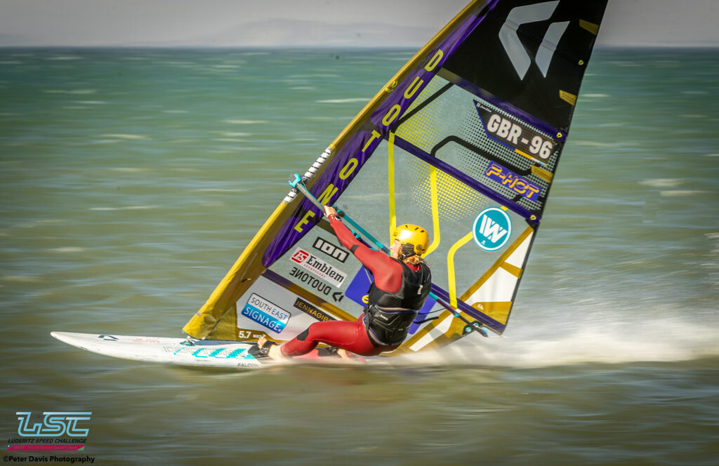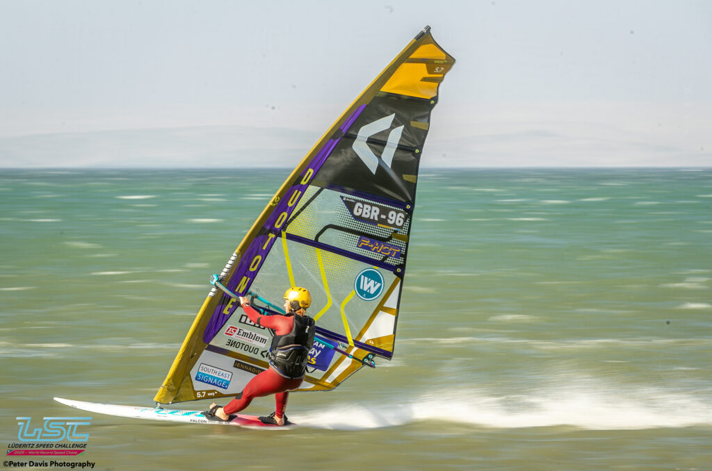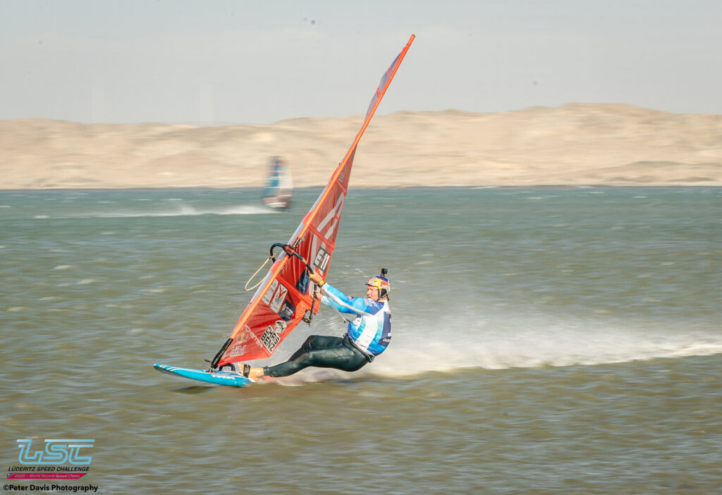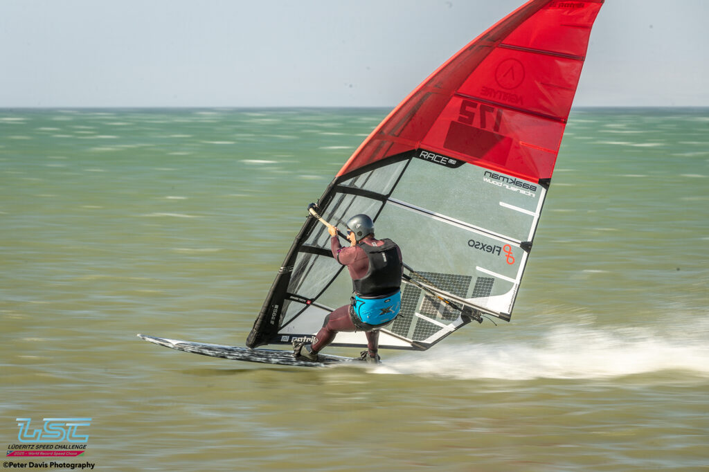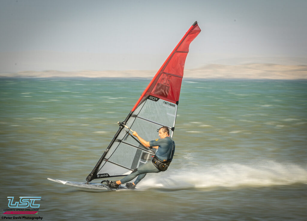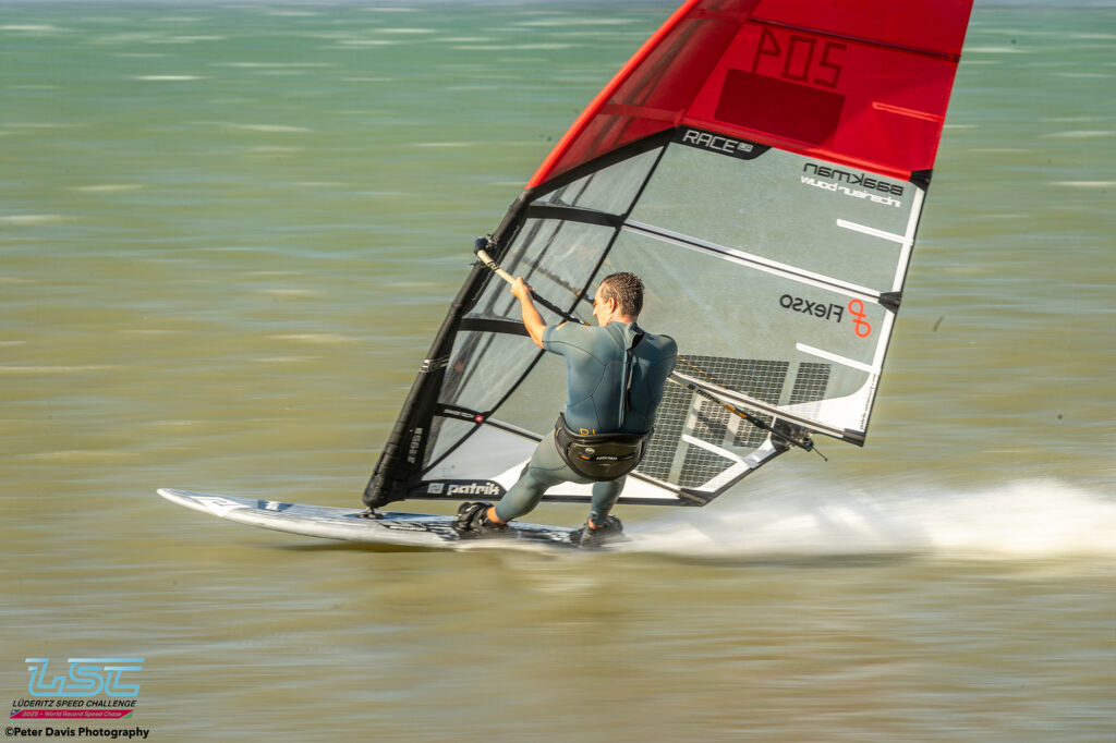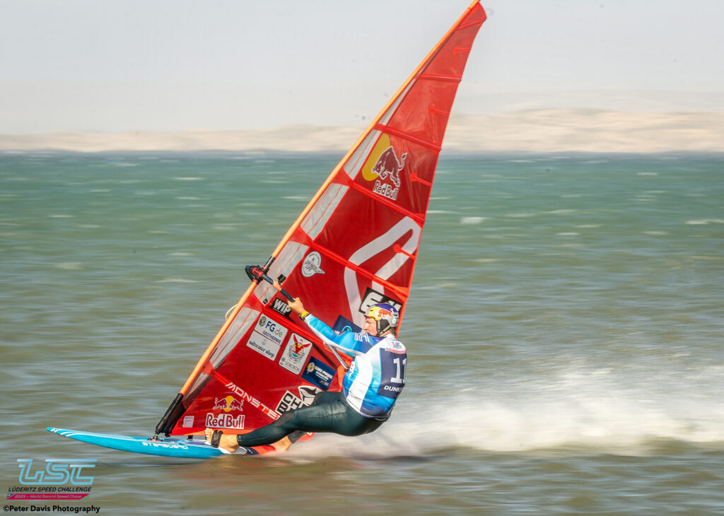 Hier (Lundi 17/11/2025), petite journée à Diaz qui avait commencé très lentement avec très peu de vent. Sur le coup de 17h le vent est monté jusqu’à 40 nœuds pendant à peu près une petite heure. Ça soufflait aussi pas mal sur le canal, mais Raffaello (l’organisateur) avait décidé d’arrêter la waiting Period à 16h. Donc, ça a été une journée d’entraînement à Diaz. Ça tournait assez fort. Il y a eu des bons runs avec des chronos de 45, 48, 49 nœuds pour les meilleurs.