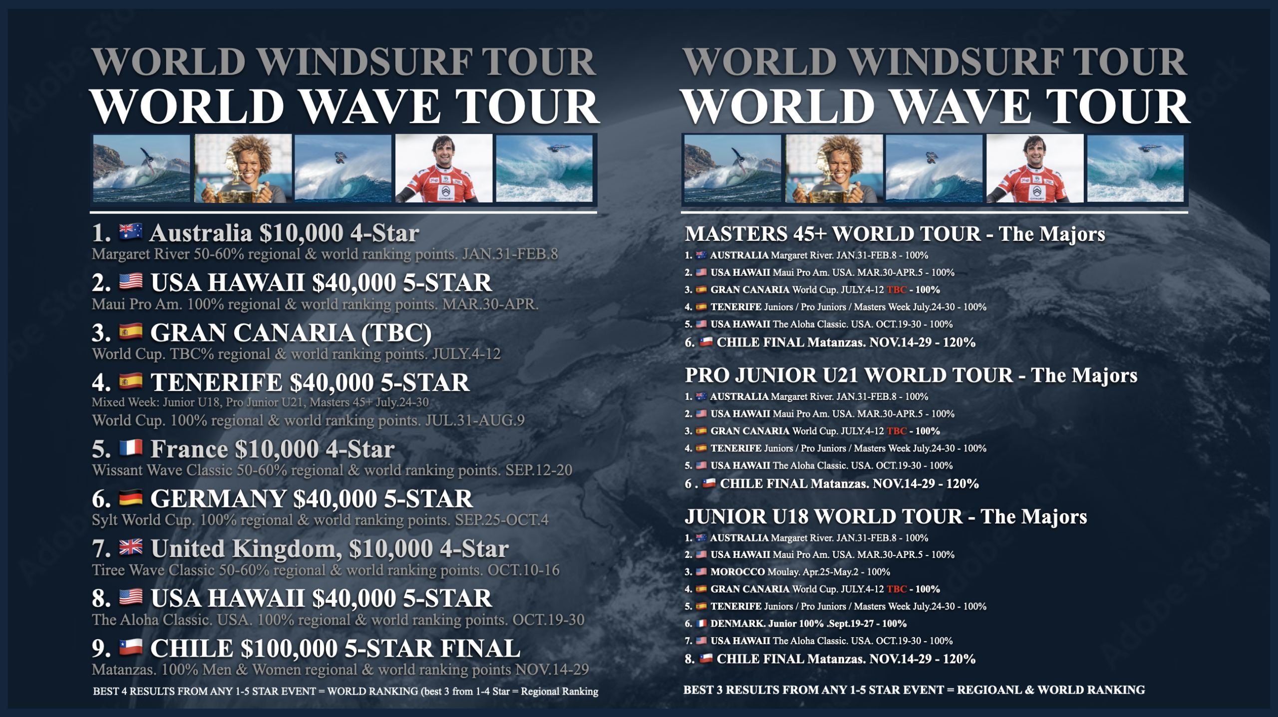 Deux des nations européennes les plus emblématiques du windsurf accèdent à l’élite internationale du nouveau circuit unifié PWA WWT World Wave Tour.